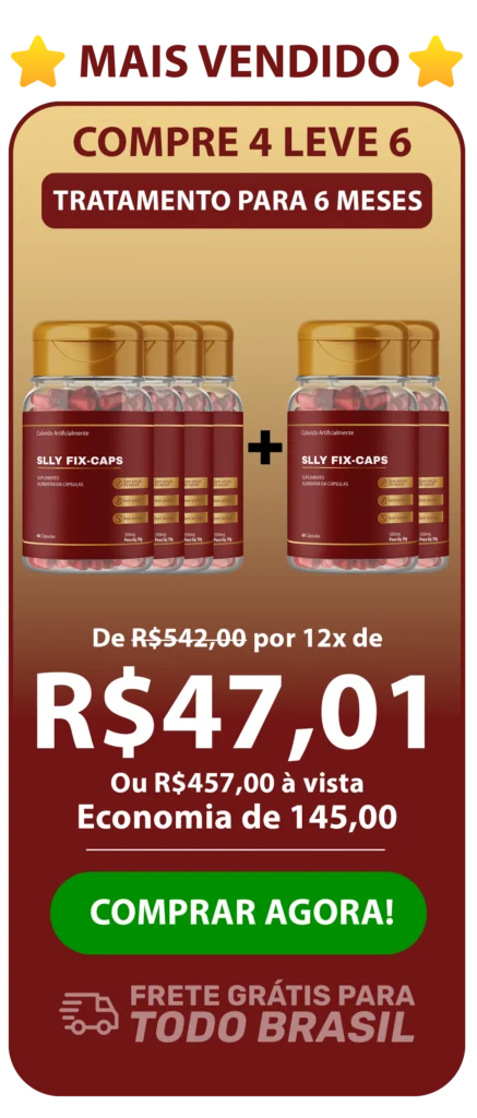 O SLLY FIX-Caps foi criado para mudar isso. Sua fórmula potente com Inulina + Pectina Cítrica age direto nas causas do ganho de peso e acelera o metabolismo, controla a fome e faz o corpo queimar gordura naturalmente, sem sofrimento.